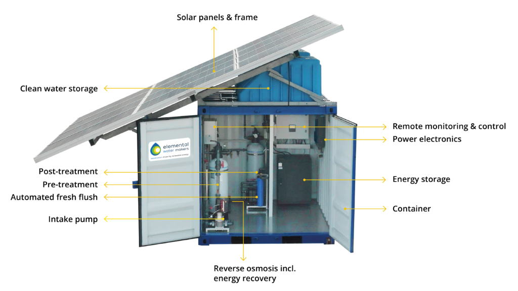 In Solar-powered Reverse Osmosis Plant or RO PLANT and UF